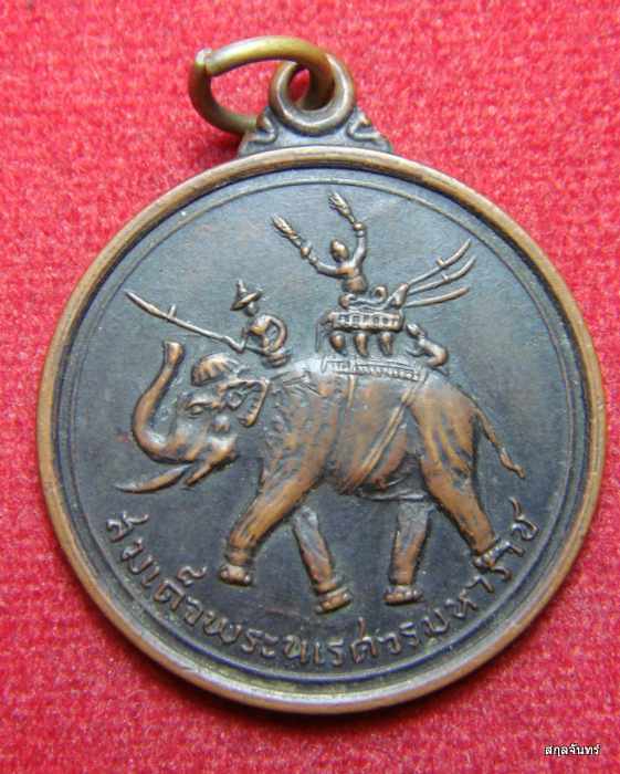 | เหรียญสมเด็จพระนเรศวรมหาราช หลังอนุสรณ์ดอนเจดีย์ วัดดอนเจดีย์ สุพรรณบุรี ปี 2513 โดยทางจังหวัดสุพรรณบุรีจัดสร้างในโอกาสฉลองการทำยุทธหัตถีของพระนเรศวร และทำพิธีปลุกเสกตามประเพณีโบราณทุกประการ เหรียญรุ่นนี้ ปลุกเสกโดยยอดเกจิที่มีชื่อเสียงของเมืองสุพรรณยุคนั้น เช่น หลวงพ่อมุ่ย วัดดอนไร่ ประสบการณ์ดีครับ เป็นของดีที่ราคาเบา |