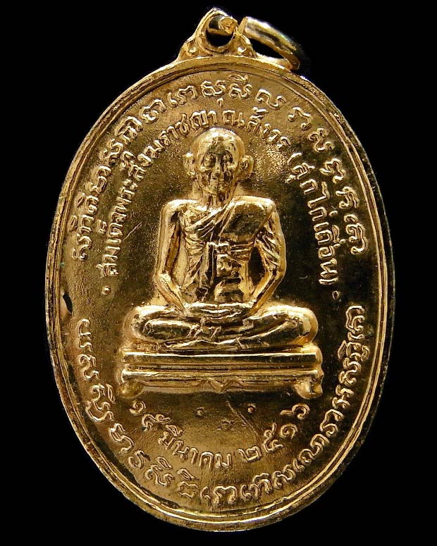 | เหรียญรูปไข่ สมเด็จพระสังฆราช (สุก ไก่เถื่อน) เนื้อกะไหล่ทอง ออกวัดราชสิทธารามราชวรวิหาร (วัดพลับ) ฝั่งธนฯ โดยทางวัดได้สร้างเมื่อปี พ.ศ. 2516 มีหลวงปู่โต๊ะ เป็นประธานในพิธี สภาพสวยสมบูรณ์ จมูกโด่ง ห่วงเดิมอยู่ครบ เก็บรักษาอย่างดี มาพร้อมบัตรรับรองพระเครื่อง ในราคาเบากว่าพระที่ออกใหม่ในปีนี้ครับ สมเด็จพระสังฆราช (สุก) ทรงเป็นสมเด็จพระสังฆราชพระองค์ที่ ๔ แห่งกรุงรัตนโกสินทร์ ได้รับการสถาปนาเป็นสมเด็จพระสังฆราชเมื่อปี พ.ศ. ๒๓๖๓ อยู่ใน ตำแหน่ง ๒ พรรษา สิ้นพระชนม์เมื่อปี พ.ศ. ๒๓๖๕ พระชนมายุได้ ๙๐ พรรษา พระองค์ประสูติเมื่อปี พ.ศ. ๒๒๗๖ พระชนกพระนามว่า เส็ง พระชนนีพระนามว่า จีบ ในรัชสมัยพระเจ้าอยู่หัวบรมโกษฐ์ แห่งกรุงศรีอยุธยา เมื่อเจริญวัยพระองค์ได้ทรงบรรพชากับท่านขรัวตาทอง ที่วัดท่าหอย โดยพระองค์ท่านได้ทรงศึกษาพระกรรมฐานมัชฌิมา แบบลำดับ เป็นครั้งแรก หลังจากนั้นประมาณ ๕ พรรษา ทรงลาสิกขาออกมาเพื่ออุปัฏฐากพระชนกพระชนนี เมื่อปี พ.ศ. ๒๒๙๗ พระชนมายุครบบวช พระองค์ได้ทรงอุปสมบทที่วัดโรงช้าง โดยมีพระครูรักขิตญาณ(สี) เป็นพระอุปัชฌาย์ ได้รับการถวายพระนามว่า พระปุณณะปญญาภิกขุ ที่นี่พระองค์ได้ศึกษาพระกรรมฐานมัชฌิมาฯ กับพระอาจารย์ใหญ่ คือ พระพนรัต (แก้ว) วัดป่าแก้ว และได้ทรงศึกษาพระปริยัติธรรมที่วัดราชาวาสจนมีความรู้แตกฉาน ล่วงไป ๗ พรรษาท่านได้รับนิมนต์กลับมาจำพรรษาที่วัดท่าหอย และได้ทรงรับเป็นพระอธิการวัดท่าหอยในปีนั้นเอง เวลาล่วงไป ๒ แผ่นดิน เมื่อปี พ.ศ.๒๓๒๖ พระบาทสมเด็จพระพุทธยอดฟาจุฬาโลกได้โปรดให้นิมนต์พระองค์ท่านมายังกรุงเทพฯ ด้วยพระองค์ทรงเป็นเคยพระอาจารย์ของพระบาทสมเด็จพระพุทธยอดฟาจุฬาโลกตั้งแต่ยังอยู่ที่วัดท่าหอย ได้จำพรรษาที่วัดพลับ(วัดราชสิทธาราม) ซึ่งเป็นวัดสำคัญฝ่ายอรัญวาสีของกรุงธนบุรีมาแต่เดิม โดยให้เป็นที่พระญาณสังวรเถร สมเด็จพระสังฆราช (สุก) ทรงเป็นที่ทรงเคารพนับถือเป็นอันมากของพระบรมราชวงศ์มาแต่ครั้งรัชกาลที่ ๑ และรัชกาลที่ ๒ ปรากฏนามพระญาณสังวรเถร เป็นพระกรรมวาจาจารย์แทบทุกพระองค์ ทำให้การศึกษาพระกรรมฐานฯ ในยุคของพระองค์ท่านรุ่งเรืองมาก พระองค์จึงได้ทรงวางรากฐานการศึกษาพระกรรมฐานมัชฌิมา แบบลำดับ ไว้อย่างมั่นคงเป็นปึกแผ่นสืบมา พระองค์ได้รับ สถาปนาเป็นสมเด็จพระญาณสังวร เมื่อปี พ.ศ.๒๓๕๙ ในรัชสมัยพระบาทสมเด็จพระพุทธเลิศหล้านภาลัย และได้รับสถาปนาเป็นสมเด็จพระสังฆราชในอีก ๔ ปีต่อมา คือในปี พ.ศ.๒๓๖๓ ทรงเป็นสมเด็จพระสังฆราชอยู่ ๑ ปีกับ ๑๐ เดือน ก็สิ้นพระชนม์ เมื่อวันพฤหัส