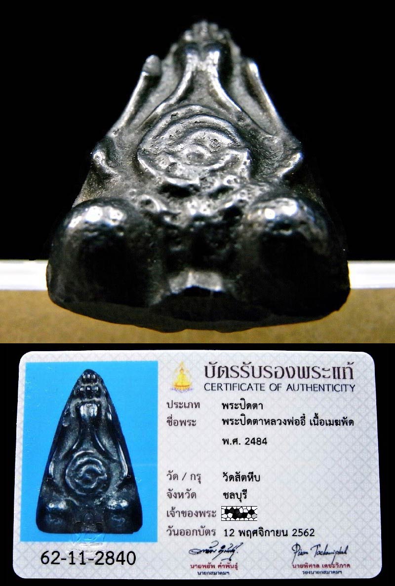 พระปิดตา หลวงพ่ออี๋ ปี 2484 เนื้อเมฆพัตร พร้อมบัตรรับรอง เลี่ยมทองสั่งทำยกซู้ม สวยกริบ เชิญชมครับ