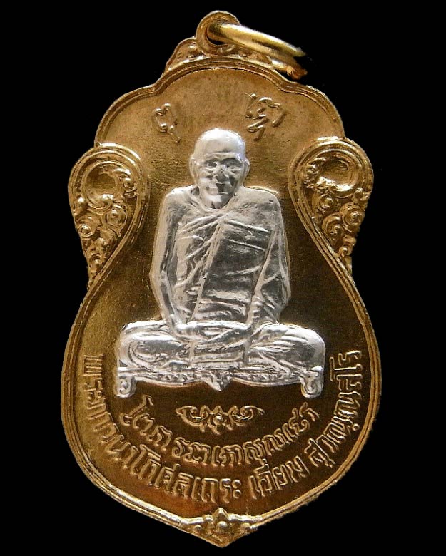 หลวงปู่เอี่ยม วัดโคนอน ปี 15 เนื้อกะไหล่ทองลงยา หน้ากากเงิน หลังยันต์สี่ หลวงปู่โต๊ะปลุกเสก สวยกริบ