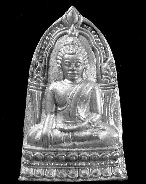 พระพุทธชินราช ใบเสมา เนื้อชินเงิน ปรอทขาว รุ้นประทานพร ปี 47 พร้อมกล่องเดิมจากวัดครับ