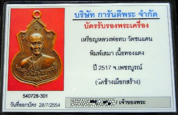หลวงพ่อทบ วัดชนแดน รุ่น 1 ปี 17 พร้อมบัตรรับรองฯ ออกวัดช้างเผือก สวยกริบ เชิญชมทุกมุมครับ