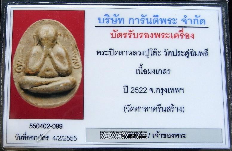 หลวงปู่โต๊ะ วัดประดู่ฉิมพลี ปี 22 หร้อมบัตรรับรองฯ พระปิดตาข้างอุ หลังยันต์ตรีฯ ออกวัดศาลาครืน