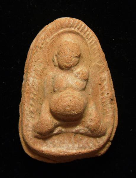 | พระพิมพ์ขุนช้าง หลวงพ่อถิร วัดป่าเลไลยก์ สุพรรณบุรี ด้านหลังมีตราพระมงกุฎข้างฉัตร สร้างด้วยเนื้อดินประมาณปี 2500ต้นๆ โดยการรวมพระเนื้อดินกรุเก่าของสุพรรณบุรีมาเป็นมวลสารผสม |
