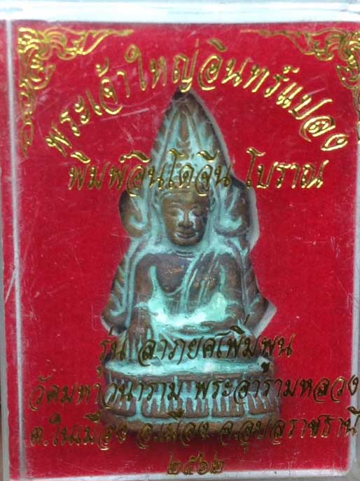| พระเจ้าใหญ่อินทร์แปลง(พิมพ์อินโดจีน) "รุ่นลาภยศเพิ่มพูน" วัดมหาวนาราม(พระอารามหลวง) ต.ในเมือง อ.เมือง จ.อุบลราชธานี ( เนื้อโลหะผสม ) สร้าง ๙๙๙ องค์ |
