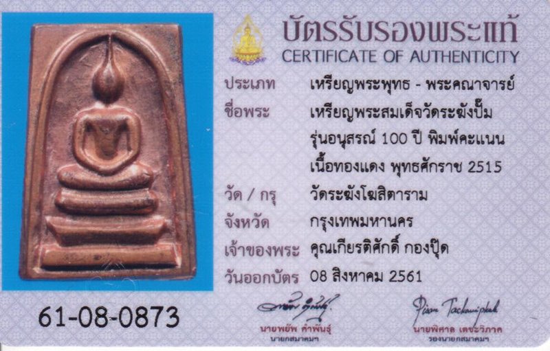 | ชื่อพระเครื่อง | เหรียญพระสมเด็จ รุ่นอนุสรณ์ 100 ปี พิมพ์คะแนน วัดระฆังฯ ปี 2515 (541) |