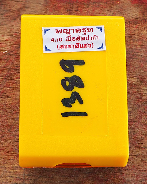 | พญาครุฑ รุ่นแรก เนื้ออัลปาก้าลงยาแดง หลวงพ่อทองสุข วัดหนองฆ้อ ระยอง หมายเลข 1389 |