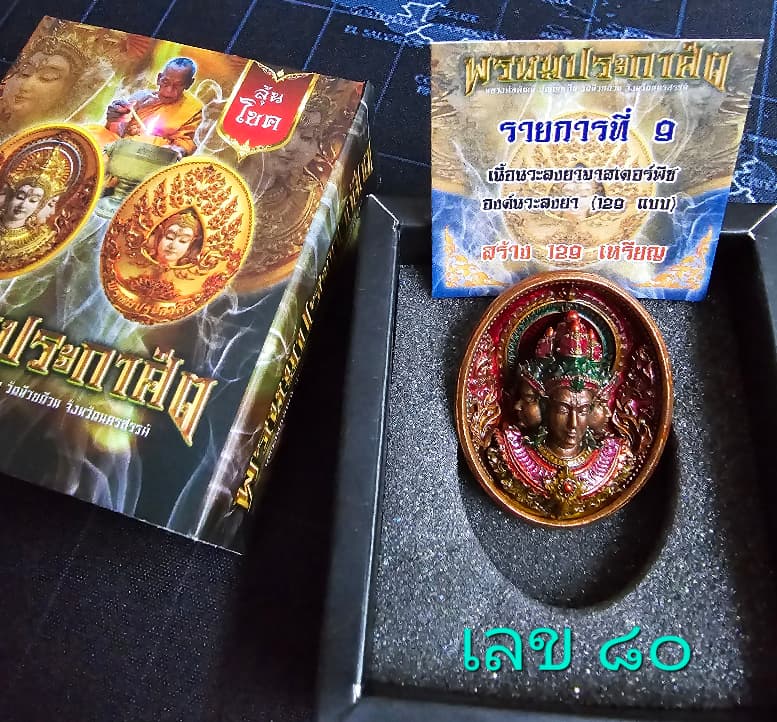 | เหรียญหล่อพุทธศิลป์ รุ่น "พรหมประกาศิต" หลังทะลุซุ้ม หลวงพ่อพัฒน์ ปุญญกาโม วัดห้วยด้วน จ.นครสวรรค์ เนื้อนวะโลหะ ลงยามาสเตอร์พีช เรืองแสง เลข ๘๐..สร้างเพียง 129 องค์ พร้อมกล่อง พระสวยมากๆๆๆ มีมิติ หล่อประกบ 2 ชิ้น "พระพรหม” เป็นมหาเทพผู้ยิ่งใหญ่หนึ่งในสาม ‘ตรีมูรติ’ ของศาสนาพราหมณ์-ฮินดู ที่เป็นที่เคารพศรัทธาสืบต่อถึงศาสนาพุทธอย่างกลมกลืนมาแสนนาน เป็นพระเจ้าผู้สร้าง ผู้ลิขิตความเป็นไปของทุกสรรพชีวิต เป็นผู้กำหนดชะตาชีวิตของมนุษย์ทุกผู้ เป็นผู้รู้ความเคลื่อนไหวของสรรพชีวิต และทรงรับฟังคำอธิษฐานของผู้ศรัทธาเสมอ ผู้บูชาพระพรหมและทำความดี จะได้รับพรให้สมหวังในสิ่งที่ปรารถนาทุกประการ พระพักตร์แรก ‘พระพักตร์เมตตา’ ประทานพรเรื่องงาน เรียน และเรื่องรับผิดชอบในชีวิต พระพักตร์ที่สอง ‘พระพักตร์กรุณา’ ประทานพรเรื่องอสังหาริมทรัพย์ บ้าน ที่ดิน รถ พระพักตร์ที่สาม ‘พระพักตร์มุทิตา’ ประทานพรเรื่องสุขภาพ ครอบครัว คู่ครอง และ พระพักตร์ที่สี่ ‘พระพักตร์อุเบกขา’ ประทานพรเกี่ยวกับโชคลาภ เงิน ทอง การขอบุตร คาถาบูชาว่า “โอม พราหมเณ นะมะ เมตตา กรุณา มุทิตา อุเบกขา” (คำแปล) ขอเคารพพระพรหม ... เมตตา สงเคราะห์ช่วยเหลือผู้มิสุข ... กรุณา สงเคราะห์ช่วยเหลือผู้มีทุกข์ ... มุทิตา ยินดีในการบุญ ... อุเบกขา วางเฉยในบาป |