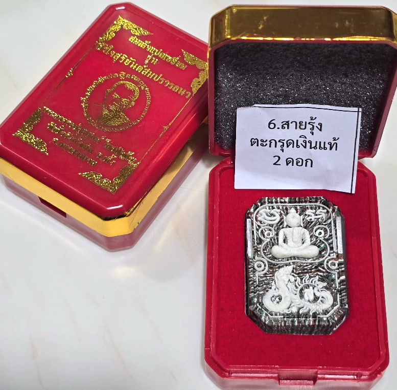 | พระอาจารย์สุริยันต์ โฆสปัญโญ วัดป่าวังน้ำเย็น มหาสารคาม สมเด็จ 8 เหลี่ยม รุ่น"หัวใจสุริยันต์สมปราถนา" เนื้อสายรุ้ง องค์ขาว ตระกรุดเงินแท้ 3 ดอก (พิมพ์หลังพระอาจารย์ครึ่งองค์) เลข ๓๕....พร้อมกล่อง |