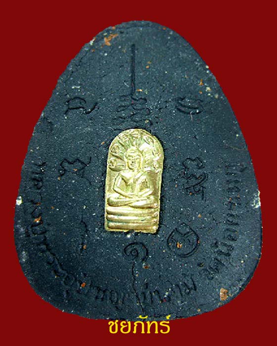 | สร้าง ปี ๒๕๕๓ มีเนื้อขาว น้ำตาล และดำ มีแบบมีตะกรุดเงิน ทองเหลือง และไม่มีตะกรุด ส่วนองค์นี้พิเศษ สร้าง 9 องค์ เป็นเนื้อน้ำดำ ตะกรุดเงิน 2 ดอก ด้านหลังฝังพระนาคปรก งูยิ้มเนื้อทองเหลือง สภาพสวยเดิมพร้อมกล่อง |