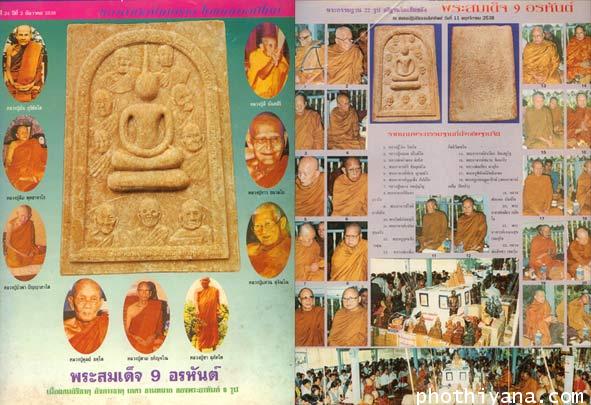 | **รหัส ศ.ร.๑๓๓๑๖ สมเด็จ9อรหันต์ เนื้อผสมอัฐิธาตุ อังคารธาตุ เกศา และชานหมากของพระอรหันต์ 9 รูป พิธีสร้างวัดอินทาราม จ.สมุทรสงคราม พ.ศ.2538 ***แบบปิดทอง หายาก พระสมเด็จ ๙ อรหันต์หรือ พระผงอังคาร ๙ อรหันต์ สร้างเมื่อปี พ.ศ.2538 เป็นที่สุดของมวลสารในการจัดสร้างพระรุ่นนี้คือ 1. พระผงรูปเหมือนหลวงปู่มั่น ภูริทัตโต ซึ่งด้านหลังบรรจุเกศาแท้ ๆ ของหลวงปู่มั่น สร้างโดยหลวงปู่เจี๊ยะ วัดป่าภูริทัตตะฯ จ.ปทุมธานี สมเด็จชานหมากของหลวงปู่เสาร์ หลวงปู่มั่น ด้านหลังฝังเหล็กเปียกสร้างโดยพระอาจารย์โชติ อาภัคโค วัดภูเขาแก้ว จ.อุบลราชธานี 2. พระผงรุ่นอายุยืน เส้นเกศา จีวร ชานหมาก ผิวสรีระบางส่วนที่ขูดออก ครั้งเปลี่ยนจีวร สีผึ้งที่ทำจากอุจจาระ ซึ่งก่อนมรณภาพหลวงปู่สี ฉันทสิริ ได้ขับถ่ายออกมาเป็นสีผึ้ง 3. เส้นเกศา-อัฐิธาตุ-อังคารธาตุ หลวงปู่สิม พุทธาจาโร 4. อัฐิธาตุ-อังคารธาตุ หลวงปู่แหวน สุจิณโณ 5. อัฐิธาตุ-อังคารธาตุ หลวงปู่ขาว อนาลโย 6. พระผงอังคารธาตุ หลวงปู่ชา สุภัทโท 7. อัฐิธาตุ-อังคารธาตุ ชานหมากหลวงปู่สาม อกิญจโน 8. อัฐิธาตุ-อังคารธาตุ หลวงปู่ดูลย์ อตุโล 9. อัฐิธาตุ-อังคารธาตุ หลวงปู่บัวพา ปัญญาภาโส และผงธาตุกายสิทธิ์เช่น 1. ผงอิทธิเจ ปถมัง มหาราช 2. ผงว่าน ๑o๘ 3. ดินสังเวชนียสถานทั้ง ๔ ประสูติ ตรัสรู้ ปฐมเทศนา และปรินิพพาน 4. ใบโพธิ์ ของต้นโพธิ์ตรัสรู้แท้ ๆ จากประเทศอินเดีย 5. ผงแร่เกาะล้าน แร่เกาะคาม แร่เกาะภูเก็ต แร่เมฆพัด 6. ผงแร่เหล็กไหลเพลิง 7. ผงเหล็กไหลตาแรด หลวงพ่อสัมฤทธิ์ วัดถ้ำแฝด 8. ผงธูป ผงพระเก่า สมเด็จพระพุฒาจารย์โต 9. ดินกากยายักษ์ที่ใช้ผสมทำพระผงหลวงปู่ทวด 10. ผงเกสรดอกไม้บูชาพระอาจารย์หลายรูป 11. ผงพระเก่าหลวงพ่อมงคลบพิตร 12. ผงพระธาตุพระสิวลี ชนิดสีขาวและสีดำ 13. ผงสะเก็ดแก้ว พิสดาร โดยมีพิธีอธิษฐานจิต-พุทธาภิเษก ถึง 3 ครั้ง ครั้งที่ ๑ ภายในโบสถ์มหาอุด วัดอินทราราม ต.เหมืองใหม่ อ.อัมพวา จ.สมุทรสงคราม วันที่ ๒๔ ตุลาคม ๒๕๓๘ ซึ่งตรงกับวันเกิดปรากฏการณ์สุริยุปราคา โดยหลวงพ่อแดง นันทิโย และพระภิกษุผู้ทรงอิทธิจิตสูงส่งภายในวัดอินทรารามทั้งยังเป็นผู้สร้างพระสมเด็จ ๙ อรหันต์ ตามสูตรการสร้างพระสมเด็จที่สืบทอดมาจากหลวงปู่ใจวัดเสด็จ และ หลวงปู่หยอด วัดแก้วเจริญ ครั้งที่ ๒ พิธีมหาพุทธาภิเษก ภายในพระวิหารพระร่วงโรจนฤทธิ์ วัดพระปฐมเจดีย์ราชวรมหาวิหาร อ.เมือง จ.นครปฐม เมื่อวันพฤหัสบดีที่ ๒๖ ตุลาคม ๒๕๓๘ โดยมีพระสงฆ์ทรงสมณศักดิ์ ๙ รูป นั่งปรกแผ่เมตตาดังนี้ 1. หลวงพ่ออุตตมะ วัดวังก์วิเวการาม จ.กาญจนบุรี 2. หลวงพ่อเปิ่น วัดบางพระ จ.นครปฐม 3. หลวงพ่อลำไย วั