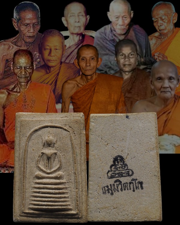 พระสมเด็จปรกโพธิ์ (พิมพ์หายาก) เนื้อผสมแร่เหล็กไหล หลวงพ่อก๋วน วัดตะเคียนทอง จ.ระยอง สภาพสวย พระหลวง