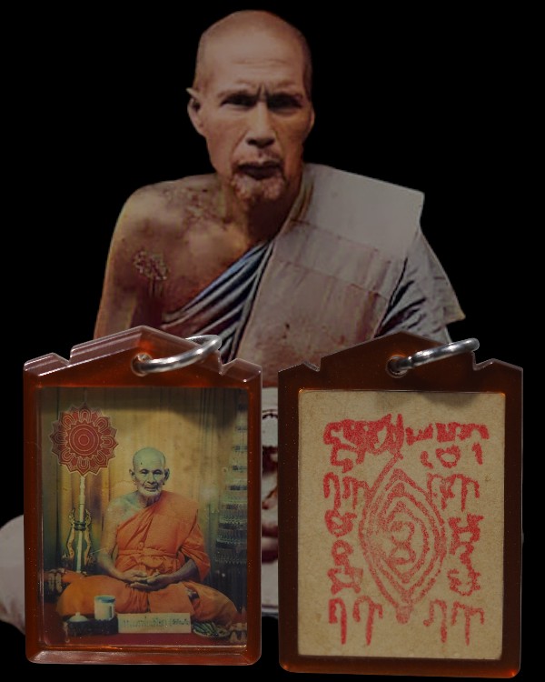 สมเด็จสามเหลี่ยมพิมพ์เล็ก หลวงปู่เผือก วัดกิ่งแก้ว หลังรูปเหมือน ปี ๒๕๑๔ เนื้อผสมผงเก่า สภาพสวย หลว