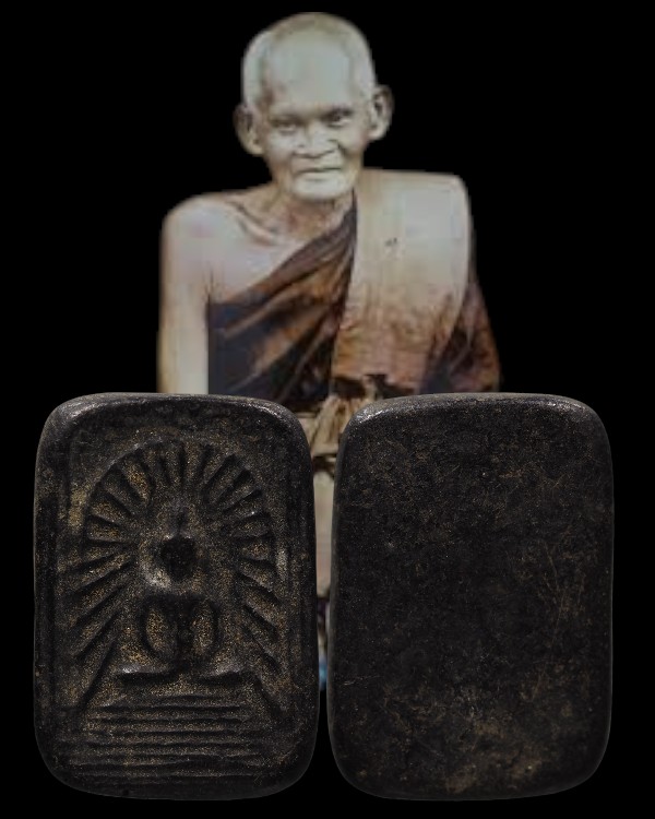 พระเนื้อผงพิมพ์พระพุทธฐานบัว 2 ช้น คล้ายหลวงพ่อในกุฏิ วัดกุยบุรี ด้านหลังปั๊มย้นต์ พระบ้านเลี่ยมเก