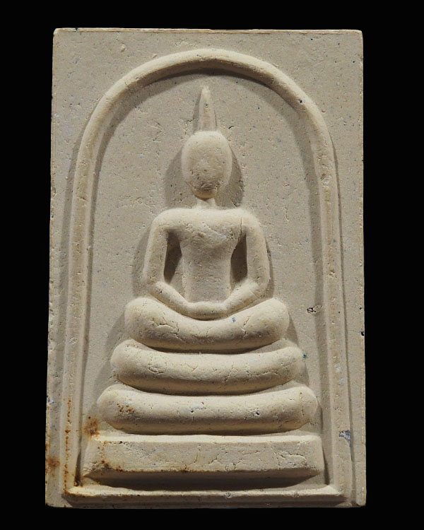 พระสมเด็จพิมพ์ 3 ชั้น เนื้อผงพุทธคุณ ด้านหลังเป็นรูปเหมือนหลวงพ่อพูล นั่งเต็มองค์ วัดไผ่ล้อม อ.เมือง