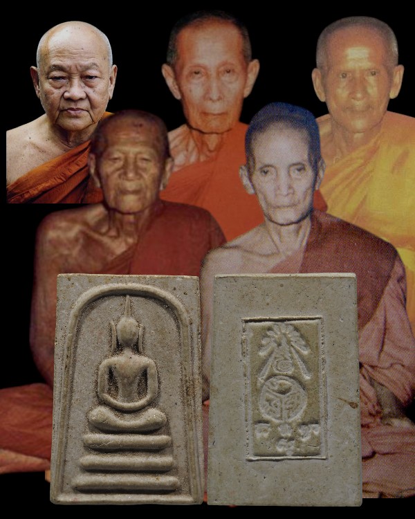 พระสมเด็จพิมพ์ทรงเจดีย์ หลวงปู่เลี่ยม วัดศรีบุญเรือง ปี 2497 ผสมผงเก่า หลวงปู่ภู วัดอินทรวิหาร พระสม