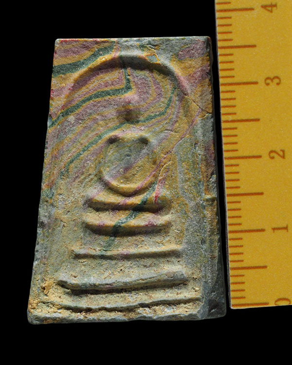 | **รหัส ศ.ร.๒๓๔๘๐ พระสมเด็จเนื้อสายรุ้ง หลังยันต์น้ำเต้า เจ้าคุณนรฯ ออกวัดศีลขันธารา จ.อ่างทอง ปี ๒๕๑๓ มวลสารและพิธีดีมาก ตามประวัติ เนื่องจากวักศีลขันธ์ฯนั้นเป็นวัดสายธรรมยุติ ซึ่งมีไม่กี่วัดในอ่างทองครับที่เป็นธรรมยุติ จึงเป็นวัดใหญ่ในตลาดอำเภอโพธิ์ทองจังหวัดอ่างทอง และสมัยก่อนมีหลวงพ่ออิ่ม เป็นเจ้าอาวาส หากลองย้อนดูจะพบว่าท่านคืออาจารย์ของท่านพุทธโฆษาจารย์เจริญ วัดเทพศิรินทร์และเป็นอาจารย์ปู่ท่านเจ้าคุณนรรัตน์ นั่นเองตามประวัติสายนี้เท่าที่ทราบ ท่านเจ้าคุณนรได้อนุญาตให้ทางวัดศีลขันธ์จัดสร้างวัตถุมงคลเพื่อหารายได้เข้าวัดเพื่อสร้างถาวรวัตถุในวัดทางลูกศิษย์ที่เคารพนับถือได้ขออนุญาตจัดสร้างวัตถุมงคลหลายชนิดและหลายวัดด้วยอาทิเช่น วัดเทพศิรินทร์,วัดปากน้ำภาษีเจริญรวมถึงวัดศีลขันธ์ฯนี้ด้วย)และจัดการพุทธาภิเษกขึ้นที่วัดเทพศิรินทร์ฯนั่นเอง สำหรับทางวัดศีลขันธ์ได้จัดสร้างพระจำนวนหนึ่งเพื่อเข้าร่วมงานดังกล่าว อาจสังเกตได้ว่ารูป แบบพิมพ์ทรงอาจไม่สวยงามเท่าไหร่เนื่องจากต้องการให้แล้วเสร็จทันในพิธีนั่นเองและนอกจากนี้ยังมีผงที่ยังไม่ได้กดเป็นองค์พระอีกหลายบาตรทีเดียว หลังอธิษฐานจิตได้ไม่นานท่านเจ้าคุณนรรัตน์ก็ได้มรณภาพลงในปีถัดมา หลังจากนั้นทางวัดศีลขันธ์ก็ได้แจกพระพิมพ์ต่างๆเรื่อยมา (แจกอย่างเดียวไม่มีจำหน่าย ใครทำบุญก็ให้หยอดตู้ครับ) ซึ่งสังเกตได้ว่าส่วนใหญ่ยันต์ด้านหลังองค์พระจะเป็นยันต์ประจำตัวของท่านเจ้าคุณนรฯและเป็นแบบยกนูนลอยตัว รวมถึงมีหลายสีด้วยเช่น ขาว ดำ จนถึงแบบสายรุ้ง (ยันต์นูนทันปีพ.ศ. 2513 ถ้ายันต์จมไม่ทันใช้ผงที่เจ้าคุณนรอธิษฐานจิตแล้วให้พระคณาจารย์อธิษฐานจิตให้) |