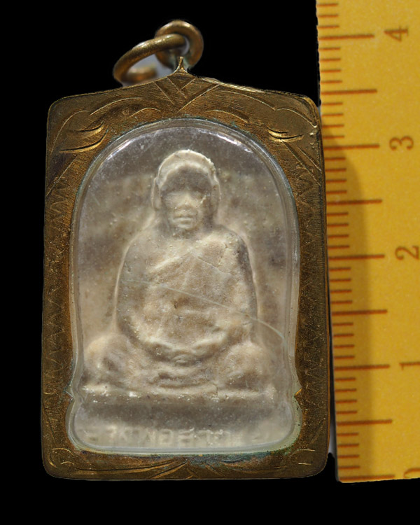 พระรูปเหมือน หลวงพ่อสำเนียง อยู่สถาพร วัดเวฬุวนาราม ต.ลำพญา อ.บางเลน จ.นครปฐม เนื้อผงหลังยันต์ ปี 25