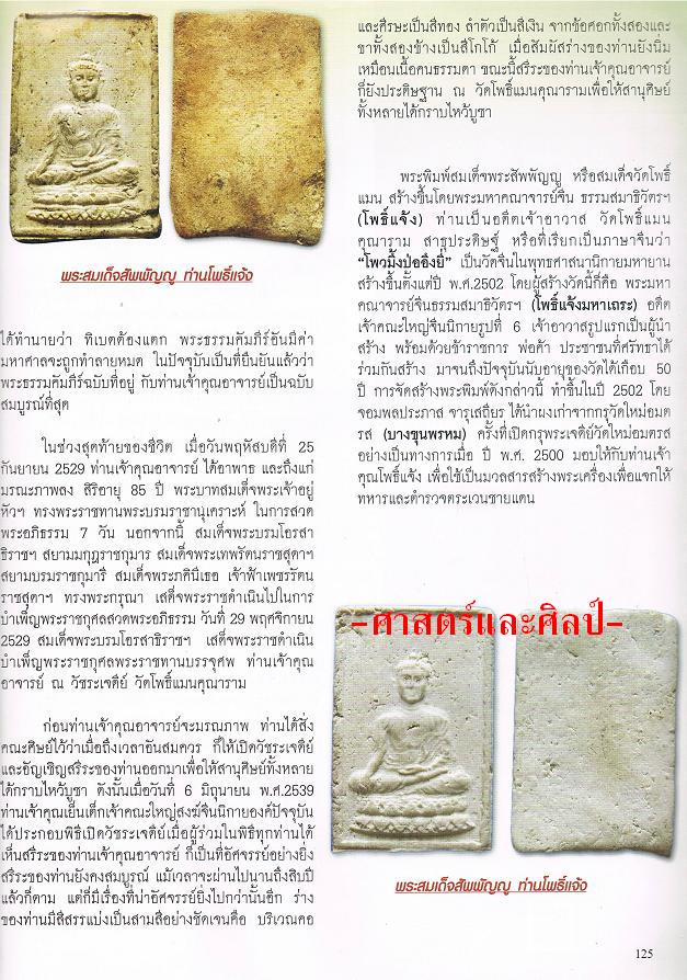 | **รหัส ศ.ร.๒๔๐๕๒ สมเด็จสัพพัญญู วัดโพธิ์แมน พระอาจารย์โพธิ์แจ้ง ๒๕๐๒ มวลสารพระสมเด็จบางขุนพรหมที่แตกหักชำรุด 8 กระสอบ มากกว่าที่ผสมในบางขุนพรหม ๐๙ ครับ พระพิมพ์สมเด็จพระสัพพัญญู พระสมเด็จวัดโพธิ์แมน พระพิมพ์สมเด็จพระสัพพัญญู หรือสมเด็จวัดโพธิ์แมน สร้างขึ้นโดยพระมหาคณาจารย์จีน ธรรมสมาธิวัตรฯ(โพธิ์แจ้ง) ท่านเป็นอดีตเจ้าอาวาส วัดโพธิ์แมนคุณนาราม สาธุประดิษฐ์ ภายหลังการมรณภาพของท่าน ปรากฏว่า สรีระของท่านไม่เน่าเปื่อย เพียงแต่แห้งลงไปเท่านั้น การจัดสร้างพระพิมพ์ดังกล่าวนี้จัดเป็นรุ่นที่สี่ของท่าน โดยในปี ๒๕๐๒ จอมพลประภาส จารุเสถียร ได้นำผงเก่าจากกรุวัดใหม่อมตะรส(บางขุนพรหม) มอบให้กับท่านอาจารย์ เพื่อให้สร้างพระเครื่องขึ้นเพื่อแจก ทหารและตำรวจตระเวนชายแดน เมื่อตอนที่จอมพลประภาสได้นำผงมาถวายจากสมเด็จบางขุนพรหมที่แตกหักชำรุด 8 กระสอบท่านอาจารย์กล่าวว่า ผงเก่านี้มีพุทธคุณสูงมาก จึงได้ให้ศิษย์ไปขอเพิ่มเติมจากทางวัดใหม่อมตะรสอีกจำนวนหนึ่ง(อีกหลายกระสอบ) และเมื่อท่านอาจารย์ทราบว่าผงเก่านี้เป็นของท่านสมเด็จพระพุฒาจารย์(โต พรหมรังสี) ได้สร้างไว้ในอดีต ท่านเจ้าคุณโพธิ์แจ้ง ถึงได้อุทานออกมาว่า " มิน่าเล่า พุทธคุณถึงสูงนัก " ด้านหน้าเป็นองค์พระพุทธปฏิมาแบบจีน ประทับนั่งปางมารวิชัย บนฐานบัวคว่ำบัวหงาย ในกรอบสี่เหลี่ยม ด้านหลังเรียบ แต่บางองค์ก็อาจมีตรายางประทับไว้ว่า พระสมเด็จสัพพัญญู รุ่นแรก ๒๕๐๒ วัดโพธิ์แมนคุณนาราม โดยสีของหมึกมีทั้งม่วงและชมพู พระสมเด็จวัดโพธิ์แมนนี้ จัดได้ว่าเป็นพระพิมพ์ที่น่าบูชาติดตัวเป็นอย่างมาก เนื่องจากมีส่วนผสมของผงเก่าที่ชำรุดของพระบางขุนพรหม เป็นจำนวนมาก ผมว่าดูเทียบกับ พระสมเด็จ บางขุนพรหม ปี ๐๙ แล้วจะมีผงเก่ามากกว่าด้วยซ้ำ(ความเห็นส่วนตัว) นับเป็นของดีราคาเยาวชนที่น่าเก็บสะสมเป็นอย่างยิ่ง ผมเคยเจอเนื้อออกสีดำเหมือนกัน เจอะเจอที่ไหนอย่าให้หลุดรอดไปหละครับ เมือปี 2500 มีการเปิดกรุที่แตกของวัดบางขุนพรหม และพบพระสมเด็จที่สมเด็จพุทธจารย์โต(พรหมรังษี)สร้างไว้จำนวนมาก มีทั้งทั้งสมบูรณ์ และที่แตกหักจำนวนน้อย...นี่คือประวัติการค้นพบที่มีหลักฐานชัดเจนสืบค้นได้ และในอีก 2ปีต่อมา ทางวัด"โพธิ์แมนคุณาราม"แถวตรอกจันทร์ซึ่งได้รับเศษของพระสมเด็จแตกของกรุบางขุรพรหมหักมาจำนวนมาก (หลายปี๊บโดยได้รับอนุเคราะห์จากท่าน จอมพลฯประภาส)นำมาสร้างเป็นพระสมเด็จขึ้นมารุ่นหนึงเมื่อปี2502จำนวนไม่มาก(เท่าที่มีผงคือผงทั้งหมดที่ได้มา)โดยจากประสพการณ์สร้างพระที่ยังไม่