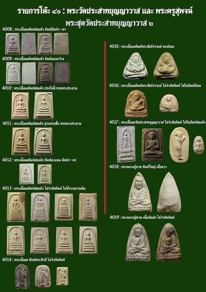 | **รหัส ศ.ร.๒๔๔๖๘ พระสมเด็จพิมพ์ 3 ชั้น(พิมพ์หลวงปู่ปั้น) วัดประสาทบุญญาวาส กรุงเทพฯ พิธีใหญ่ ปี ๒๕๐๖ มวลสารผสมผงวัดระฆัง และสมเด็จบางขุนพรหม พิมพ์นี้หายากแล้วครับ พระชุดวัดประสาทบุญญาวาส กรุงเทพฯ ปี ๒๕๐๖ มวลสารผสมผงวัดระฆัง และสมเด็จบางขุนพรหม จัดสร้างโดย "พระสมุห์อำพล"อดีตเจ้าอาวาสวัดประสาทฯ ในช่วงปี ๒๕๐๕ - ๒๕๐๙ มวลสารผสมผงวัดระฆังฯ โดยท่านพยายามเสาะหาผงวิเศษจากหลายๆพระอาจารย์รวมทั้งชิ้นส่วนพระเครื่องแตกหักเก่าๆทั้งพระกรุและพระเกจิอาจารย์นับไม่ถ้วน โดยเฉพาะชิ้นส่วนแตกหักของ "สมเด็จบางขุนพรหมกรุใหม่" ที่ทางวัดเปิดกรุ เมื่อปี พ.ศ. ๒๕๐๐ มีจำนวนหลายลังทีเดียว ว่ากันว่า พระผงวัดประสาทฯ มีชิ้นส่วนแตกหักของพระสมเด็จบางขุนพรหมมีผสมอยู่มากกว่าสมเด็จบางขุนพรหม ๐๙ เสียอีก พระเกจิที่มาร่วมพิธีวัดประสาทฯ นั้นก็มีมากถึง ๒๐๐ กว่ารูป จนนั่งภายในพระอุโบสถไม่หมด ต้องให้นั่งข้างนอกพระอุโบสถแล้วโยงสายสิญจน์ออกมา พิธีในครั้งนั้นจัดว่าเป็นพิธีปลุกเสกวัตถุมงคลที่ยิ่งใหญ่และศักดิ์สิทธิ์ที่สุดนับแต่พิธีปลุกเสกพระเครื่องฉลอง ๒๕ พุทธศตวรรษ เป็นต้นมา *** มวลสาระสำคัญที่ได้รับมอเพื่อการจัดสร้างพระมีดังนี้ *** 1.มวลสารในการจัดสร้างสุดยอด มีส่วนผสม - ผงสมเด็จบางขุนพรหม พระครูบริหารคณาวัตร รองเจ้าอาวาสมอบให้ - ผงพระหักสมเด็จพระพุฒาจารย์โต - ผงพระหักสมเด็จปิลันท์ ซึ่งพบในเจดีย์วัดเทพากร - ผงพระเครื่องของขวัญวัดปากน้ำ ลพ.สดมอบให้วัดประสาทเมื่อปี พ.ศ. ๒๔๙๗ - ผงพระหักกรุลำพูน - ผงพระกรุวัดพลับ - ผงหลวงพ่อโอภาสี เป็นต้น *** เจตนาการสร้างดี พิธีใหญ่ โดยนิมนต์พระเกจิที่มีชื่อเสียง จากทุกวัดในประเทศไทยขณะนั้นมาร่วมปลุกเสก เช่น อาจารย์ทิม วัดช้างให้ ลพ.คล้าย วัดสวนขัน ลพ.น้อย วัดธรรมศาลา ลป.โต๊ะ วัดประดู่ฉิมพลี ลพ.แดง วัดเขาบันไดอิฐ ลพ.เงิน วัดดอนยายหอม ลพ.กวย วัดโฆสิตาราม ลพ.พรหม วัดช่องแค ลพ.ทบ วัดชนแดน ลป.ทิม วัดระหารไร่ ลป.เขียว วัดหรงบน ลพ.จง วัดหน้าต่างนอก ลป.ดู่ วัดสะแก ลป.สี วัดสะแก ลพ.โบ๊ย วัดมะนาว ฯลฯ |