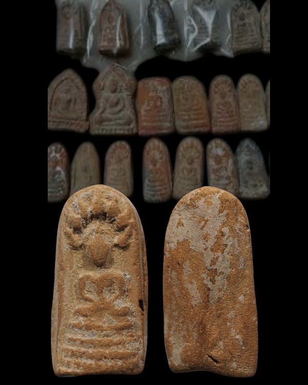 **รหัส ศ.ร.๒๕๙๓๖ พระนาคปรกเนื้อดิน อายุความเก่า100กว่าปี กรุวัดโตนดลาย จ.สมุทรสาคร ประสบการณ์ดี และหายาก ประสบการณ์สูง พระมีขนาดประมาณ 1.6 X 3 ซม เนื้อพระคล้ายกับหลวงพ่อโตบางกระทิงกรุอยุธยา พระกรุวัดตะโหนดราย ถือเป็นพระกรุที่เก่าแก่ที่สุดของเมืองสมุทรสงคราม ถึงแม้ว่าเมืองสมุทรสงครามนั้นจะมีประวัติศาสตร์ที่ยาวนาน แต่กลับมีพระกรุขึ้นแค่เพียงวัดเดียวนั้นก็คือวัดตะโหนดราย ซึ่งสันนิษฐานว่าสร้างขึ้นในยุคกรุงรัตนโกสินทร์ มีอายุอยู่ในราวพุทธศตวรรษที่ ๒๓- ๒๔ แตกกรุเมื่อประมาณปี พ.ศ. ๒๕๐๕ ในสมัยที่พระอธิการเท เป็นเจ้าอาวาสวัดตะโหนดราย เท่าที่พบเห็นมีอยู่ด้วยกัน ๒ พิมพ์คือพิมพ์พระประธาน(ฐานผ้าทิพย์) และพิมพ์นาคปรก โดยมีการสร้างด้วยกัน ๒ เนื้อคือเนื้อดินเผา และเนื้อชิน(หายาก) จำนวนการสร้างรวมกันหลักหมื่นองค์ แตกกรุเมื่อประมาณปี พ.ศ. ๒๕๐๕ ในสมัยของพระอธิการเท(เจ้าอาวาสรูปที่ ๗) สันนิษฐานว่าสร้างขึ้นในยุคกรุงรัตนโกสินทร์ มีอายุอยู่ในราวพุทธศตวรรษที่ ๒๓- ๒๔ เพื่อสืบทอดพระพุทธศาสนาตามคติความเชื่อของคนโบราณ โดยมีการสร้างและบรรจุไว้ภายในเจดีย์ของวัด พุทธลักษณะเป็นพระขนาดเท่าปลายนิ้ว ที่มีการค้นพบมีการสร้างด้วยกัน ๒ เนื้อ คือเนื้อชิน(หายาก) และเนื้อดินเผา จำนวนการสร้างรวม ๒ พิมพ์หลักหมื่นองค์ ด้านหน้า เป็นรูปจำลององค์สมเด็จสัมมาสัมพุทธเจ้าประทับนั่งสมาธิ บนฐานนาคปรก ๗ เศียร ด้านหลัง เรียบ ไม่มีอักขระใดๆ พระกรุวัดตะโหนดราย พิมพ์พระประธาน(ฐานผ้าทิพย์) พระกรุวัดโตนดลาย สมุทรสงคราม เนื้อชิน พิมพ์พระประธาน พระกรุวัดโตนดลาย สมุทรสงคราม เนื้อชิน พิมพ์พระประธาน พระกรุวัดโตนดลาย สมุทรสงคราม เนื้อชิน พิมพ์พระประธาน พระกรุวัดโตนดลาย สมุทรสงคราม เนื้อชิน พิมพ์พระประธาน พระกรุวัดโตนดลาย สมุทรสงคราม เนื้อดิน พิมพ์พระประธาน ด้านหน้า เป็นรูปจำลององค์สมเด็จสัมมาสัมพุทธเจ้าประทับนั่งสมาธิ บนฐานชุกชี มีผ้าทิพย์พาดสวยงาม |