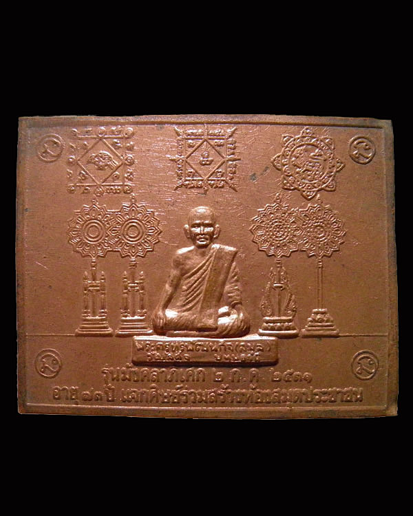 แผ่นทองแดงปั๊ม พระครูลมูล (ส.พัฒนกิจ) วัดเสด็จ จ. ปทุมธานี อายุ 73 ปี ปี 2531 รุ่นรัชมังคลาภิเศก