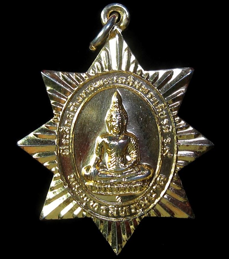 | เหรียญพระพุทธสีหภูมิบาล ที่ระลึกสร้างหอเฉลิมพระเกียรติ ร.๙ วิทยาลัยการปกครอง กระทรวงมหาดไทย ปี2531 หลังสิงห์ กะไหล่ทอง |