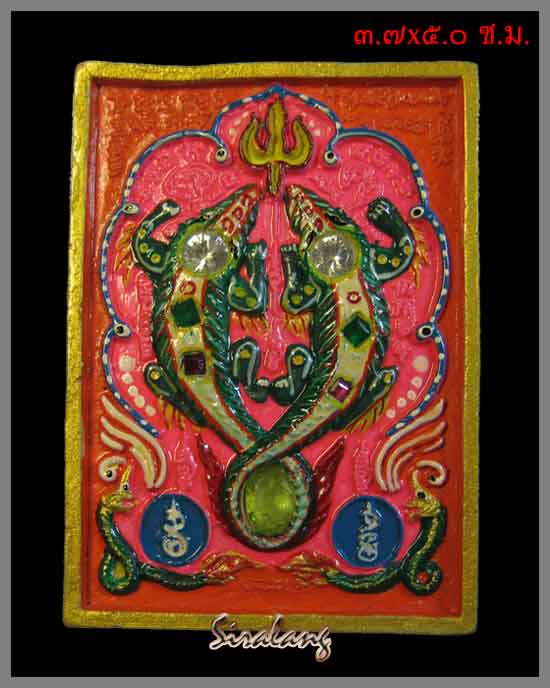 | จรเข้ครูบากฤษณะ ฝังพลอยด้านหน้า-หลัง ด้านหลังฝังกระตุดจารมือ 2 ดอก เพ้นสี ลายเซนต์ |