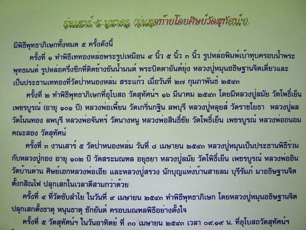 | สวยโค๊ตหมายเลขถูกต้อง โปรดจำตัวเลขให้แม่นของเก๊ยังทำตัวเลขไม่ได้เลี่ยมทองคำแท้ครับทองทำมาประมาณ5,000บ. ปิดตายันต์ยุ่ง รุ่น เสาร์ 5 บูชาครู สร้างปี 43 พิธิมหาพุทธาภิเษก 5 พีธี ใต้ฐานตอกโค๊ตปุ่หมุน จำหมายเลขไม่ได้ ไม่มีกล่องสวยมากๆ สร้างเพียง 2999 องค์ (ไม่มีกล่องครับ ) รุ่นเสาร์ 5 บูชาครู มีพิธีพุทธาภิเษกทั้งหมด 5 ครั้งดังนี้ ครั้งที่ 1 ทำพิธีเททองหล่อพระรูปเหมือน 9 นิ้ว 5 นิ้ว 3 นิ้ว รูปหล่อพิมพ์เบ้าทุบ ครอบน้ำพระพทุธมนต์ รูปหล่อครึ่งซีกที่ติดข้างขันน้ำมนต์ พระปิดตายันต์ยุ่ง หลวงปู่หมุนอธิษฐานจิตเดี่ยวและเป็นประธานเททองที่ วัดป่าหนองหล่ม สระแก้ว เมื่อวันที่ 27 กุมภาพันธ์ 2543 ครั้งที่ 2 ทำพิธีพุทธาภิเษกที่อุโบสถ วัดสุทัศน์ฯ 16 มีนาคม 2543 โดยมีหลวงปู่ลมัย วัดโพธิ์เย็น เพชรบูรณ์ (อายุ 101 ปี),หลวงพ่อเพี้ยน วัดเกริ่นกฐิน ลพบุรี ,หลวงปู่หลุย วัดราชโยธา ,หลวงปู่ผล วัดโนนทอง ลพบุรี , หลวงพ่อจันทร์ วัดนางหนู หลวงพ่อสินธิ์ชัย วัดโพธิ์เย็น เพชรบูรณ์,หลวงพ่อถนอม คณะ 2วัดสุทัศน์ฯ ครั้งที่ 3 เสาร์ 5 วัดป่าหนองหล่ม วันที่ 8 เมษายน 2543 หลวงปู่หมุน เป็นประธานพิธีร่วมกับหลวงปู่ถอง อายุ 102 ปี วัดสระมณฑล อยุธยา, หลวงปู่ลมัย วัดโพธิ์เย็น เพชรบูรณ์ (อายุ 101 ปี) หลวงพ่ออิน วัดบ้านด่าน ศิษย์เอกหลวงพ่อเอีย และหลวงปู่สรวง นักบุญแห่งบ้านสายลม บุรีรัมย์ มาอธิษฐานจิตตั้งกสิณไฟ ปลุกเสกในเวลาตี 3 กว่าด้วย ครั้งที่ 4 ที่วัดซับลำไย ในวันที่ 9 เมษายน 2543 ทำพิธีพุทธาภิเษก โดยหลวงปู่หมุน อธิษฐานปลุกเสกตั้งธาตุ หนุนธาต หมุนธาตุ ชักยันต์ ครอบมณฑลพิธีอย่างตั้งใจ ครั้งที่ 5 วัดสุทัศน์ฯ ในวันอาทิตย์ที่30 เมษายน 2543 เวลา 09.19 น.ที่อุโบสถ์วัดสุทัศน์ ฯ |