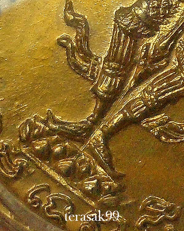 | เหรียญปั๊มพระสยามเทวาธิราช วัดป่ามะไฟ ปราจีนบุรี ปี 2518 พิมพ์ใหญ่ พิมพ์นิยม เหรียญนี้มีลักษณะ ด้านหน้าเป็นรูปจำลองพระสยามเทวาธิราช ล้อมรอบด้วยอักขระขอมว่า "อะสังวิสุโลปุสะพุภะ" และด้านล่างเป็นอักขระขอมที่ถอดความได้ว่า "พระสยามเทวาธิราช".. ส่วนด้านหลังเป็นรูปวิมานพระสยามเทวาธิราช ด้านบนเป็นอักขระขอมว่า "นะ ชา ลี ติ" และด้านล่างเป็นอักษรไทยว่า "พระวิมานพระสยามเทวาธิราช พ.ศ.๒๕๑๘" รายนามพระเกจิอาจารย์ที่ร่วมในพิธีพุทธาภิเษก ประกอบด้วย 1. สมเด็จพระญาณสังวรฯ(เจริญ) สมเด็จพระสังฆราชฯ วัดบวรนิเวศวิหาร กรุงเทพมหานคร 2. หลวงพ่อเงิน วัดดอนยายหอม นครปฐม 3. หลวงปู่โต๊ะ วัดประดู่ฉิมพลี กรุงเทพฯ 4. พระอาจารย์ฝั้น วัดป่าอุดมสมพร สกลนคร 5. หลวงพ่อผาง วัดอุดมคงคาคีรีเขต ขอนแก่น 6. หลวงพ่อแพ วัดพิกุลทอง สิงห์บุรี 7. หลวงปู่สิม วัดถ้ำผาปล่อง เชียงใหม่ 8. หลวงพ่อแดง วัดแหลมสอ เกาะสมุย สุราษฎร์ธานี 9. หลวงพ่อหงษ์ วัดชลคราม สุราษฎร์ธานี 10. พระอาจารย์วัน วัดถ้ำอภัยดำรงธรรม สกลนคร 11. พระครูสุตาธิการี (อยู่) วัดใหม่หนองพะอง สมุทรสาคร 12. พระครูเกษมธรรมานันท์ (แช่ม) วัดดอนยายหอม นครปฐม 13. พระครูปัญญาทราทร วัดเขาชายธง ถ้ำมุตติสุข นครสวรรค์ 14. พระกัสสปมุนี อำเภอบ้านค่าย ระยอง 15. พระครูสังวรกิตติคุณ (เอีย) วัดบ้านด่าน ปราจีนบุรี 16. พระอาจารย์สาม อภิญจโน วัดป่าไตรวิเวก สุรินทร์ ฯลฯ รวมสุดยอดพระเกจิอาจารย์ทั้งนั้นครับ. ***พิมพ์นิยม ด้านหน้าเหรียญ ที่ระหว่างขาทั้ง2ข้างมีเส้นแตกวิ่งลง ด้านหลังเหรียญ มีเส้นรัศมีสาดกระจายรอบๆยอดมณฑบตรงกลางครับ. กะไหล่ทองสวยเดิมๆจากวัด เลี่ยมพลาสติกกันน้ำสวยๆให้พร้อมใช้ ของดีราคาเบาๆแบ่งกันไปใช้ครับ องค์จริงตามรูป รับประกันตามกฎทุกประการ.*** |