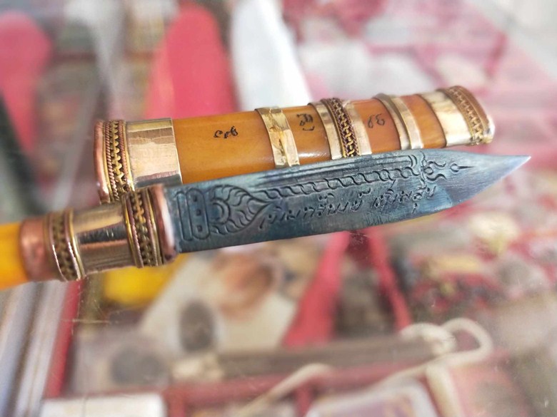 | แท้ทันหลวงปู่ สร้างน้อยหลักร้อย ปี 53 รุ่นเพิ่มทรัพย์เพิ่มสุข สวยสมบูรณ์แบบ (ความยาวรวมด้าม 5 นิ้ว หรือ 13 ซม.) มีดหมอปราบมารด้ามปากกา กระดูกแกะ มีพลานุภาพในทางป้องกันแก้อาถรรพณ์์ ป้องกันคุณไสยมีคุณในทางแคล้วคลาด เพิ่มทรัพย์เพิ่มสุขให้กับคุณ ถ้าหากใครมีมีดหมอเอาไว้ประจำบ้านท่านว่าเมื่อจะเกิดเหตุการณ์ใด มีโจรภัยหรือมีเหตุร้ายเกิดขึ้นกับคนในครัวเรือนนั้น อาถรรพณ์จากมีีดหมอก็จะทำให้เรารู้ตัวก่อนเสมอ และจะเพิ่มทรัพย์เพิ่มสุขให้กับคุณ วัตถุมงคลเครื่องรางของขลังสายเขมร เมตตามหาเสน่ห์ เมตตามหานิยม หลวงปู่หงษ์ได้ฤกษ์พิธีมหาพุทธาอธิฐานจิตปลุกเสก ประจุ พระคาถาและประจุธาตุทั้ง 4 คือ ดิน น้ำ ลม ไฟ เข้าสู่วัตถุมงคล เพื่อความสมบูรณ์ตามประเพณี และความศักดิ์สิทธิ์ เข้มขลังถูกต้อง เพื่อประสงค์จะให้ผู้ที่เคารพศรัทธาในองค์หลวงปู่หงษ์ ที่จัดสร้างขึ้นในครั้งนี้มีไว้บูชาที่บ้านหรือติดตัว จะอยู่เย็นเป็นสุข คุ้มภัยกันภัย และมีความเจริญรุ่งเรือง ในหน้าที่การงาน ค้าขายร่ำรวย แคล้วคลาดปลอดภัย ดีนักแล ฯ (พระครูปราสาทพรหมคุณ)หรือหลวงปู่หงษ์ พรหมปัญโญ วัดเพชรบุรี (สุสานทุ่งมน) ต.ทุ่งมน อ.ปราสาท จ.สุรินทร์ ยอดพระเกจิอาจารย์ผู้เปี่ยมไปด้วยเมตตาบารมีแห่งแดนอีสาน หลวงปู่ท่านมีพระเวทวิทยาคมมีพลังจิตญานสูง วัตถุมงคลที่ท่านอธิษฐานจิตปลุกเสก ล้วนแล้วแต่ศักดิ์สิทธิ์เข้มขลัง ท่านมีบุญญาบารมีมากเป็นที่เคารพบูชา เป็นที่พึ่งของ ของเหล่าบรรดายานุศิษย์และประชาชนทั่วประเทศ และประเทศเพื่อนบ้านเลย เคยมีผู้สามารถสัมผัส และจับพลังจิตได้ลองสัมผัสพลังจิตวัตถุมงคลของหลวงปู่ หลายท่านบอกว่ามีพลังจิตสูงมาก ดังนั้นวัตถุมงคลของท่านจึงเป็นสุดยอดของดีที่ควรมีไว้บูชาเป็นอย่างยิ่ง นะโม ๓ จบ นะเมติ ๑๒ จบ ดีนักแลฯ นะเมติ พระคาถาบทนี้เป็นคาถา ประจำสำนักที่ไว้ให้ศิษย์ภาวนาเวลาจะสื่อกับครูบาอาจารย์หลวงปู่ท่านเคยบอกว่าเราภาวนา นะเมติ นี้หนาสะเทือนขึ้นไปถึงพรหมโลกหมายถึง นะเมติ นี้ถ้าเราภาวนาจะสื่อไปถึงสุดแดนครูบาอาจารย์ผู้สถิตย์อยู่บนชั้นพรหมโลกและความหมายของ นะเมติ นี้หลวงปู่ท่านบอกว่าหมายถึงรสน้ำนมแม่พระธรณี คืออาหาร พืชพันธุ์ ข้าวน้ำต่าง ๆ ที่เลี้ยงดูทุก สรรพชีวิตอย่างไม่ลำเอียง ใครจะปลูก ใครจะหว่านใครจะเก็บเกี่ยว เอาไปกินไม่ว่า คนหรือสัตว์ ไม่ว่าคนรวยหรือคนจน พระสงฆ์ เณร ชีหรือ อลัชชี มหาโจร คนต่ำทราม แม่พระธรณีย์ก็ไม่เคยรังเกียจมีคุณให้การเลี้ยงดูเท่าๆกันหมด แล้วแต่ใครจะเก็บเกี่ยวใช้สอยได้มากเท่าใด นะเม