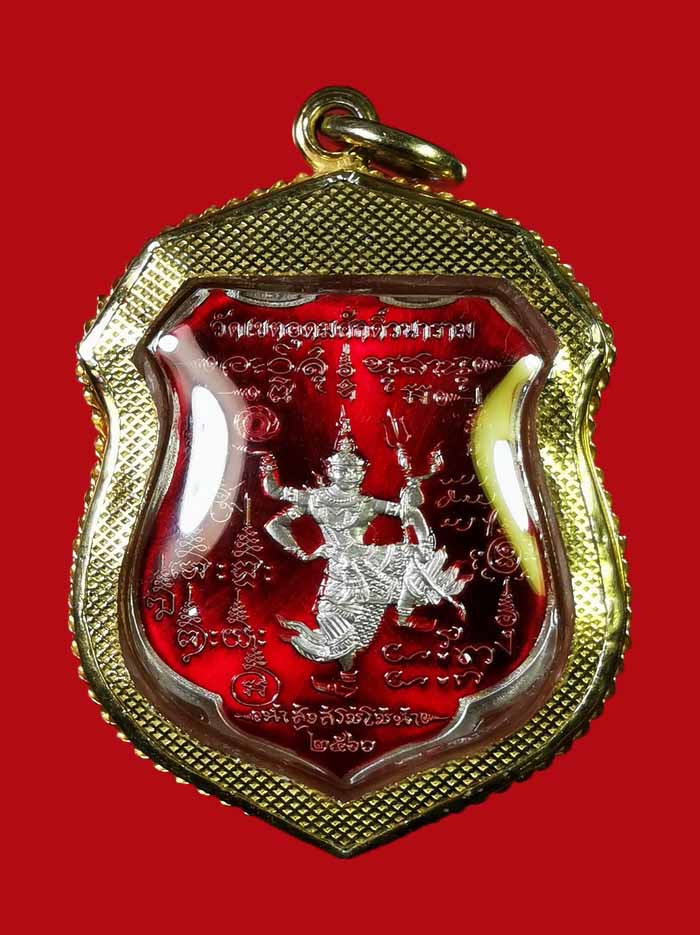 | เหรียญรุ่นนี้ออกแบบได้สวยงามลงตัวมากครับ องค์นี้เนื้อเงิน ลงยาแดง เนื้อเงินสร้างเพียง 49 เหรียญ องค์นี้เลี่ยมเงิน ชุบทอง ลงยา งานสุโขทัย พร้อมใช้ ต่อไปจะต้องเป็นตำนานอย่างแน่นนอน ด้วยจำนวนสร้างที่น้อยมาก ออกแบบได้สวยงาม อีกทั้งได้ 6 เกจิดัง ร่วมปลุกเสก มีพิธีทั้งทางพราหมณ์ (เทวดารูปด้านหลังของเหรียญ) และพิธีทางพุทธศาสนา ถูกต้องครบถ้วน ตามพิธีโบราณ เกจิปลุกเสกในพิธี 1.หลวงพ่อตุด วัดธรรมถาวร จ.ชุมพร ประธานจุดเทียนชัย 2 หลวงพ่อแถม วัดช้างแทงกระจาด จ.เพชรบุรี ดับเทียนชัย 3 หลวงพ่อหลา วัดดอนรวบ จ.ชุมพร 4 หลวงพ่อคิด วัดคอเตี้ย จ.ชุมพร 5 หลวงพ่อล้าน วัดขนาย จ.สุราษฎร์ธานี 6.พระอาจารย์เดี่ยว วัดถ้ำโพงพาง จ.ชุมพร |