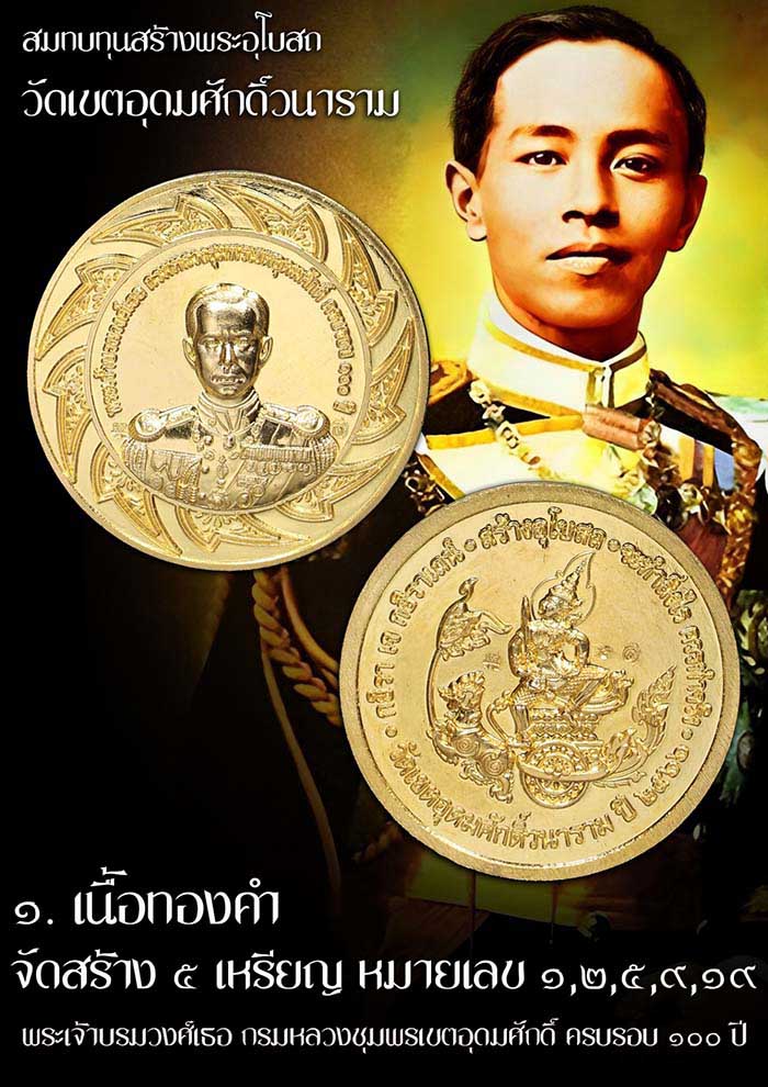 เหรียญกรมหลวงชุมพร วัดเขตอุดมศักดิ์ จ.ชุมพร ปี 66 อนุสรณ์ 100 ปี รุ่นสร้างอุโบสถ เนื้อทองคำ